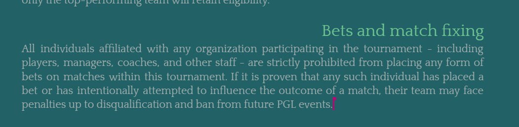 Если это правило будет нарушено, тогда команду могут дисквалифицировать с чемпионата. Ей также могут запретить выступать на турнирах от PGL.