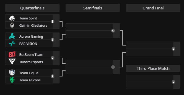 Завершились групповая стадия и десайдеры на Esports World Cup, по итогам которых в плей-офф чемпионата прошли Spirit, BetBoom Team, Aurora, Liquid, PARIVISION, Gladiators, Tundra и Falcons.