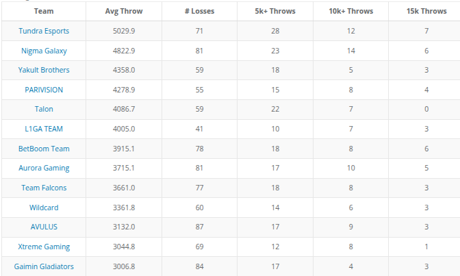 Второй по этому показателю стала Nigma – 63 карты с преимуществом в 5+ тысяч золота. Yakult Brothers – топ-3 (26 матчей).