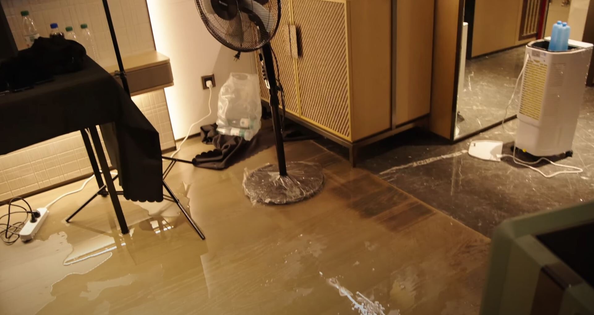 Позже организаторы помогли устранить проблему и вытерли воду.
