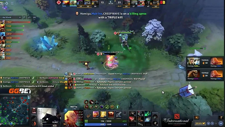 На скриншоте – момент, где Malr1ne на Лине предугадал, куда прыгнет Larl на Квопе, и дал стан заранее, убив мидера.