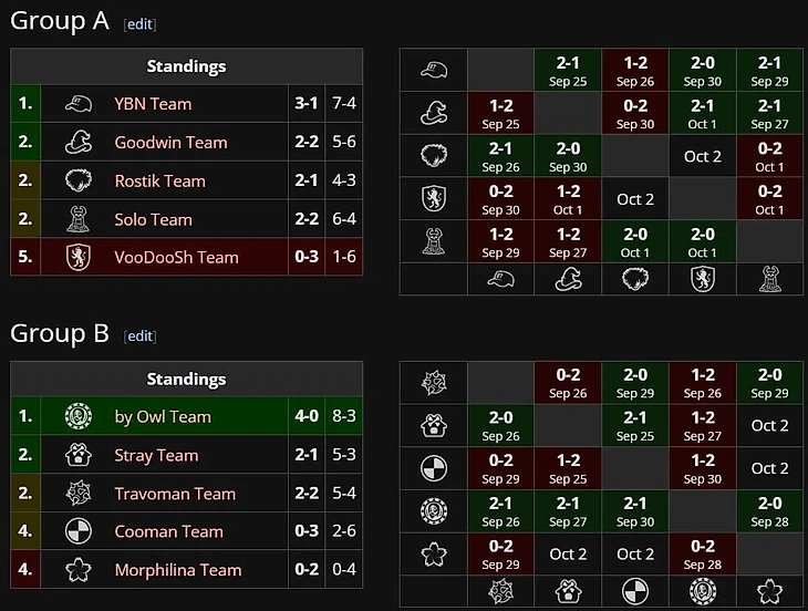 Группа А: Goodwin Team, Rostik Team, Solo Team, Voodoosh Team, YBN Team.