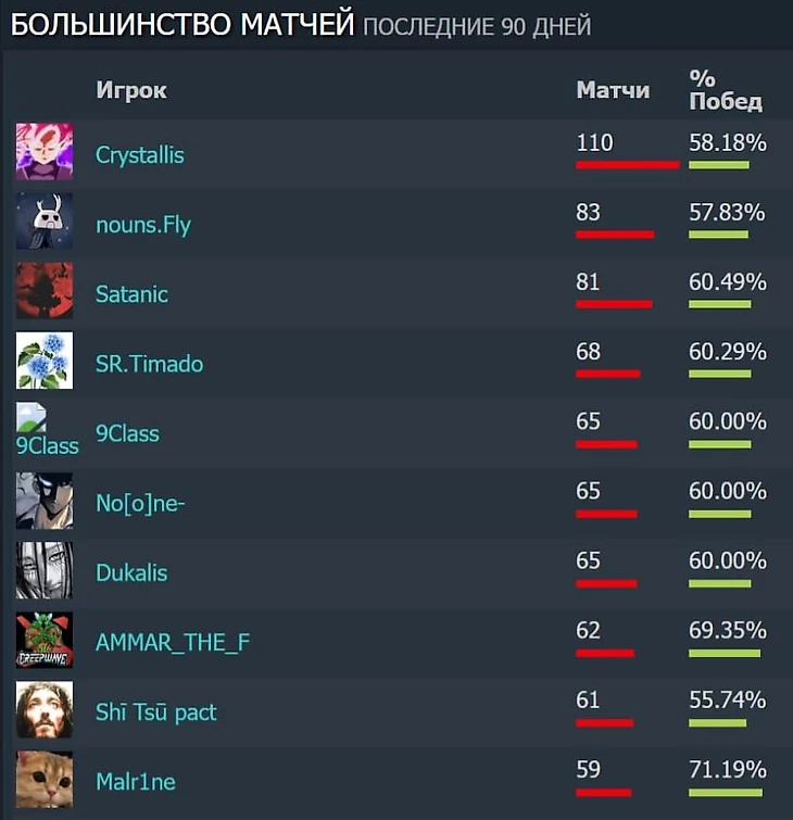 Crystallis сыграл наибольшее количество карт на про-сцене за последние 3 месяца – 110