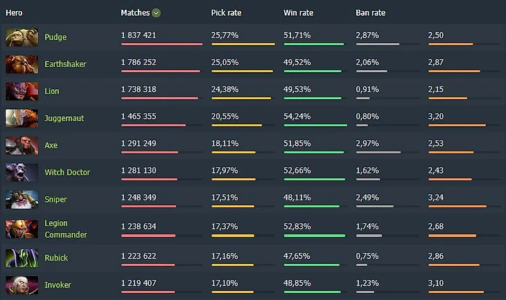 • Pudge вернул 1-е место по количеству пиков в матчмейкинге. Шейкер лидировал 3 недели