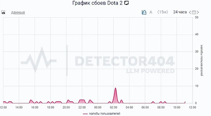 Согласно Downdetector, на сбой в Доте 2 сегодня жалуются жители Москвы и регионов. Всего за сутки на проблемы с игрой пожаловались 51 раз.