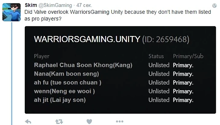 Skim: «Valve проглядели WarriorsGaming Unity, потому что они не зарегистрированы как профессиональные игроки?»