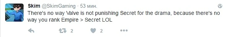 Skim: «Нет вариантов, кроме как Valve наказали Secret за драму, потому что невозможно оценить Empire>Secret»