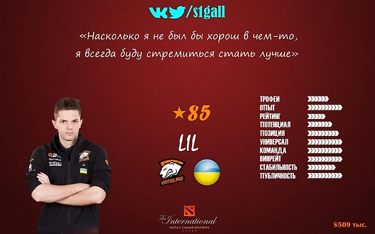 Открывает список СНГ-игроков этого чарта Lil. Он как никто другой понимает важность медийной составляющей в нынешних реалиях, поэтому всегда уделяет достаточно времени этому аспекту. И это абсолютно никак не мешает ему быть одним из лучших игроков мира на своей позиции. В игре Илья еще круче, чем в Твиттере, что несомненно заслуживает уважения.