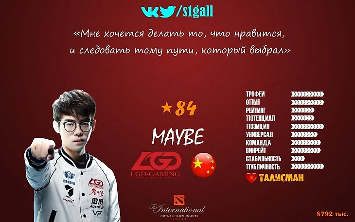 После удачного The International 2015 в LGD были настолько восхищены игрой молодого и талантливого мидера, что подписали с ним самый долгосрочный контракт за всю историю Dota 2. Тот Maybe был любимчиком публики, теперешний же немного сдал. Если только Яо Лу поймает кураж — он сможет вывести свою команду на пьедестал Key Arena, как сделал это полтора года назад.