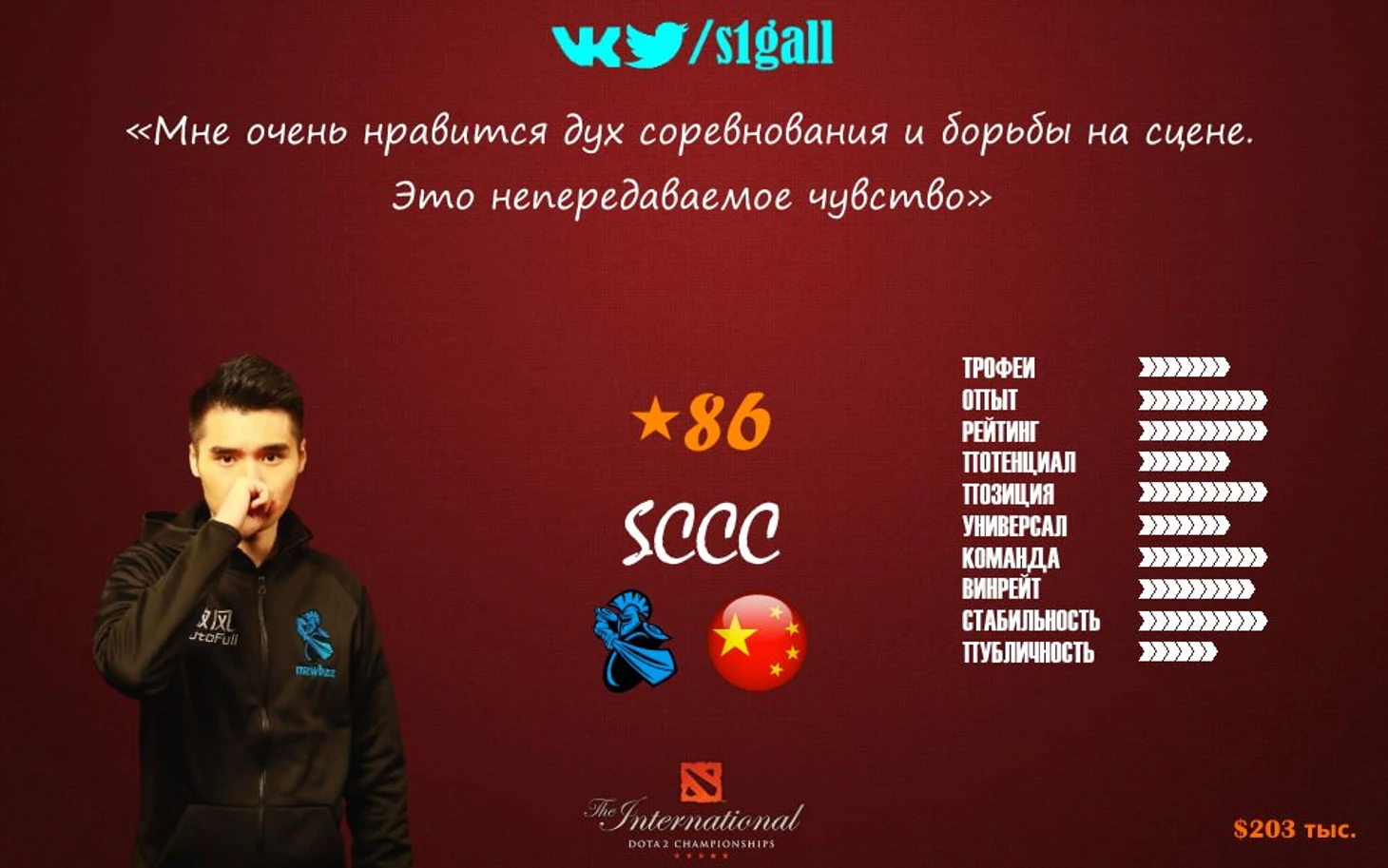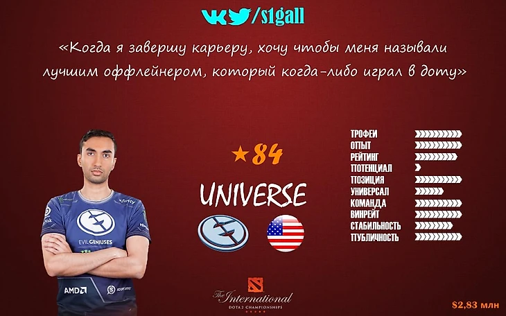 Эту фразу UNiVeRSe произнес в феврале прошлого года, и уже можно утверждать, что он достиг своей маленькой цели. Когда речь заходит о сложной линии сразу вспоминаешь о Саахиле, который является образцом для подражания. Карьера американца уже близка к закату, и главное – выбрать нужный момент, чтобы уйти на пике славы, как это сделал его коллега Fear. Многое будет зависеть от результатов этого The International.