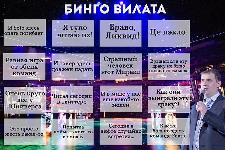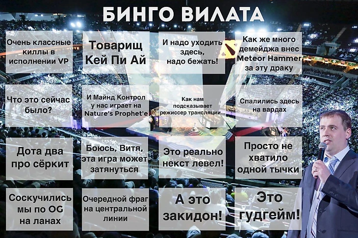 Вряд ли кто-то станет отрицать, что Виталий «V1lat» Волочай – самый известный и авторитетный комментатор СНГ-доты. А многими еще и любимый, не в последнюю очередь из-за эпичных фраз, которые он повторяет из эфира в эфир. Чтобы смотреть мейджор стало еще веселее, мы собрали для вас «Вилат-бинго» – забавную игру с простыми правилами.