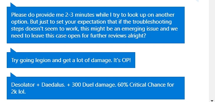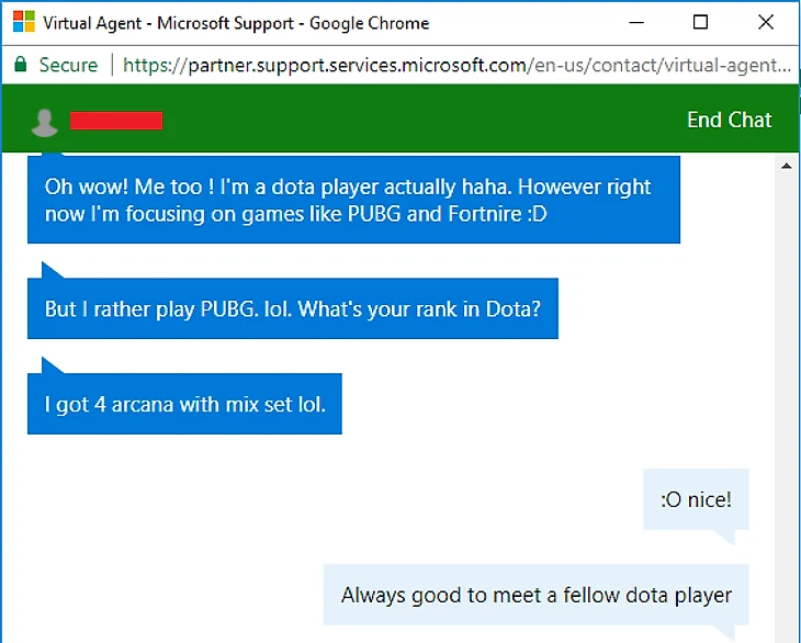 Пользователю реддита Regular_Customer в такой ситуации повезло намного больше. Обратившись в службу поддержки Microsoft по поводу игры Sea of Thieves, он не только получил помощь по своей проблеме, но и нашел приятного собеседника. Специалист компании очень сильно обрадовался, когда узнал, что Regular_Customer тоже играет в доту.