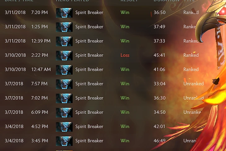 Пользователь реддита sem4ph0r опубликовал скриншот со своими последними играми в доте. По его словам, он пересел на Баратрума после того, как сломал левую руку.
