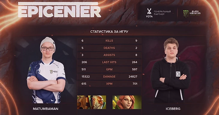 На второй карте Iceberg тоже показывал высочайший класс игры, на этот раз – на СФе. Аналитики предсказывали, что он будет закупаться в магический урон, но и с руки SF накидывал неплохо: