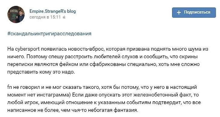 Представители Team Empire сразу же заявили, что переписка – фейк.