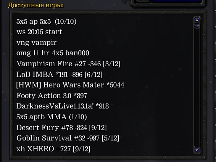 Сайт iCCup выдает следующую цифру вечером воскресенья: 13856 игроков онлайн, но это вместе с кастомными картами Варкрафта. Примерно так выглядит список лобби: