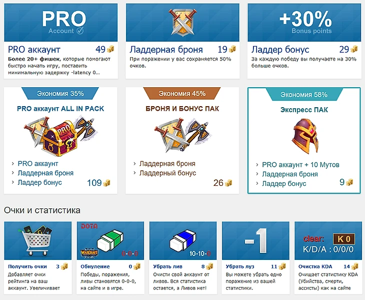 Для чистоты эксперимента, и потому что я забыл пароль от старого аккаунта, я специально завел новый аккаунт. При регистрации мне выдали 8 золотых монет, валюты сайта iCCup и я решил посмотреть, что на них можно купить. Тут-то меня и ждало главное разочарование. Все разговоры о честности Dota Plus и о доступе к поиску по ролям для владельцев Battle Pass – ничто в сравнении с функциями донатеров iCCup: