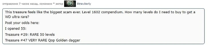 «Эта сокровищница – одно большое кидалово. У меня компендиум 1602-го уровня. Сколько еще уровней мне нужно купить, чтобы мне выпал WD?