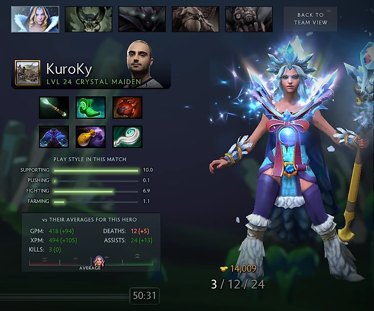 В первой игре на TI8 капитан команды Team Liquid Kuroky решал проблему с выживаемостью своего героя, Crystal Maiden. Игра была сумбурной – команды отдавали 10 тысяч преимущества за одну минуту и комбэкали со счета 16-2. Вот и Куро решил действовать под стать игре и собрал на CM... Тараску!