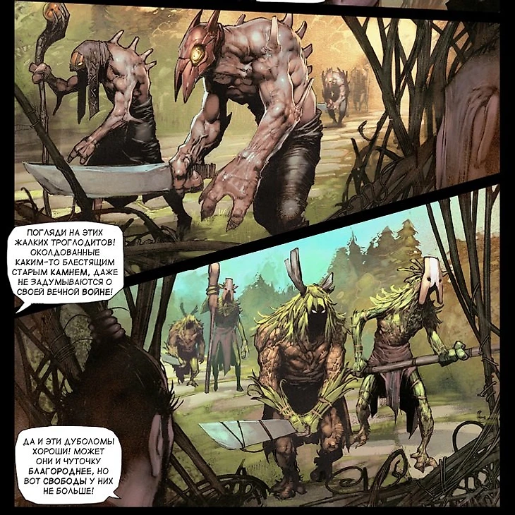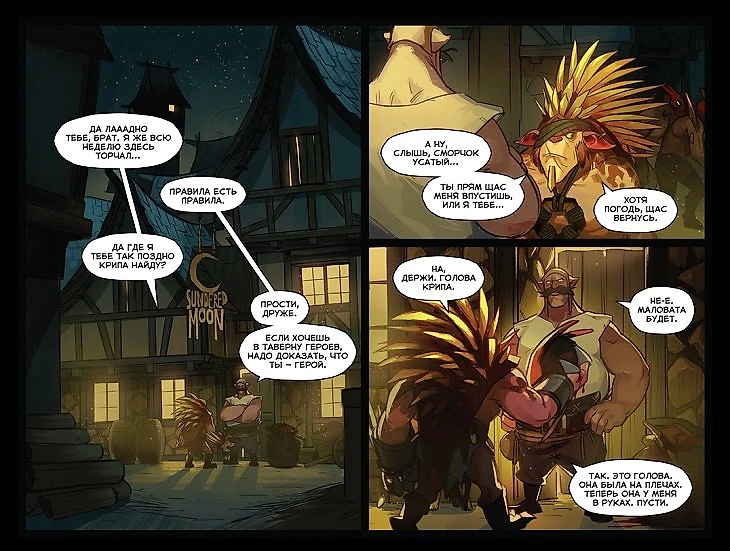 Бристла не пускают в таверну героев. Чтобы доказать свое «геройство» тот должен принести голову крипа. После прочтения комикса можно подумать, что жизнь крипа значит буквально ничего.