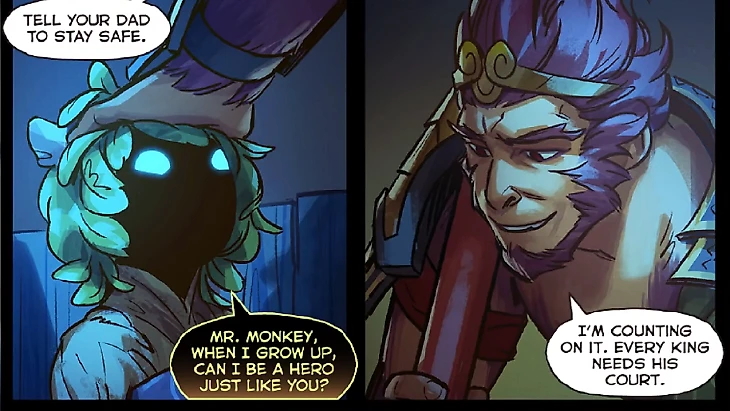 «Конечно, я не могу ответить тебе на все вопросы. Ответ на некоторые из них ты найдешь в Артифакте (например, персонаж Kanna может быть интересен тебе). Комикс «Мы уже герои?» и оба комикса про MK повествуют о разных временных отрезках. Что касается комикса «Осколок Луны», то мы специально сделали его шутливым – то, что происходит на его страницах, нетипично для Dota-мира в целом».