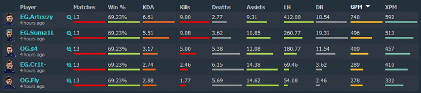 Пока Nisha отдыхает, Артур отжал себе первое место по среднему GPM на мейджоре, и, кажется, не планирует никому его отдавать. Все рассуждения о шансах Evil Geniuses на этом мейджоре плавно сводятся к тому, как далеко Артур сможет затащить свою команду.