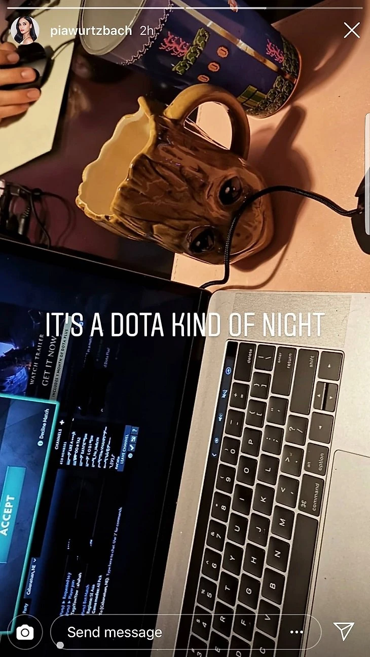 Вчера она выложила в инстраграме фотографию, где показала, как проводит вечера. За дотой!