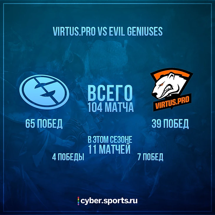 Статус EG и VP на момент встречи. С одной стороны, Evil Geniuses были топ-3 командой мира, а учитывая резкий спад Wings, то и вовсе лучшей. С другой, VP уже оформили одну мини-сенсацию на квалификациях, не пустив Team Liquid на мейджор.