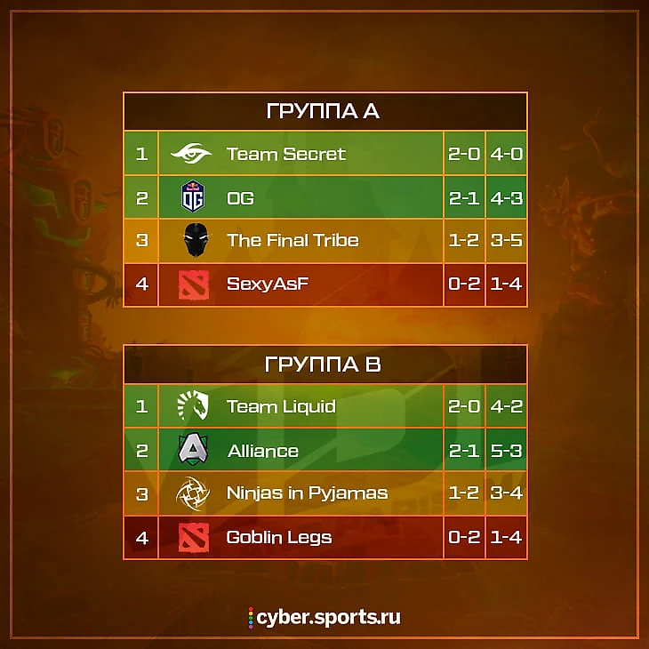 Предсказуемо? Конечно. Secret и Virtus.pro заняли первые места в своих группах и не проиграли ни одной карты. Кстати, VP продолжает свои эксперименты. За четыре карты мы увидели: