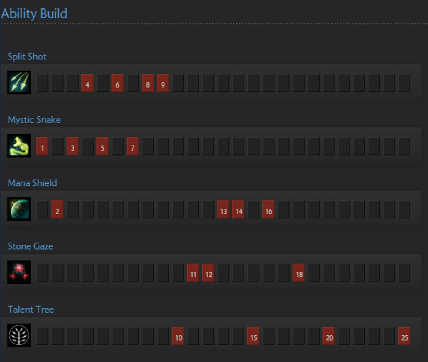 Старайтесь использовать Mystic Snake максимально эффективно. Используйте это умение чтобы обеспечить ласт-хит на крипе-маге и нанести дополнительный урон по своему сопернику на линии. Старайтесь атаковать эти цели последними прыжками Mystic Snake.