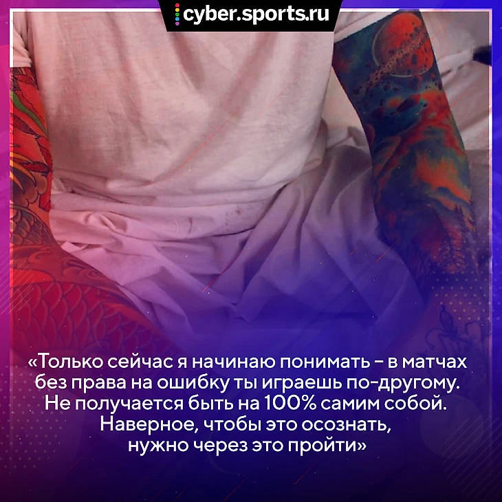 К отборам TI8 он все так же играл в разных миксах; его стак с Соннейко не прошел СНГ-квалификацию. В этом сезоне – не сыграл ни на одном DPC-турнире, потерял и нашел команду перед самым The International и камбэкнул в грандфинале отбора, проигрывая 1:2. Я постарался узнать, что чувствует игрок, который до самого последнего матча сезона был на грани провала.