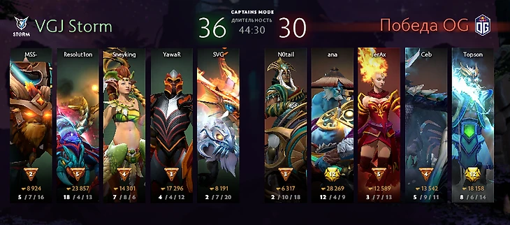 После поражения SVG сказал: «OG определенно не лучший соперник для нас». Он еще не знал, что команда, собранная 3 месяца назад, станет таким барьером не только для VGJ.Storm, но и для всех на турнире.