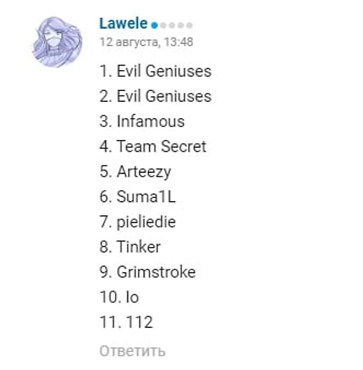 Результаты конкурса прогнозов на The International 2019