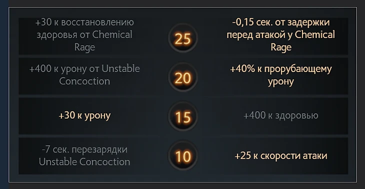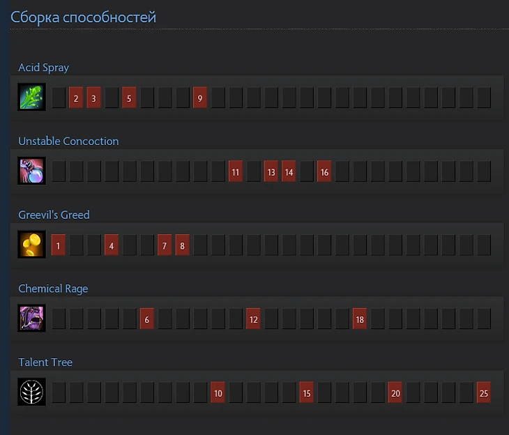 Внимательно следите за длительностью и перезарядкой вашего ключевого умения - Chemical Rage. Координируйте свою команду, просите играть их отталкиваясь от ваших нужд. Когда в команде Алхимик, игра всегда должна строиться вокруг него.