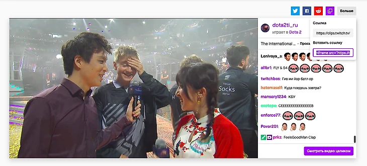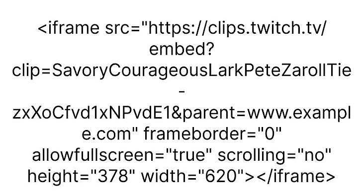 Вот так выглядит правильный пример кода для вставки клипа с Твича: