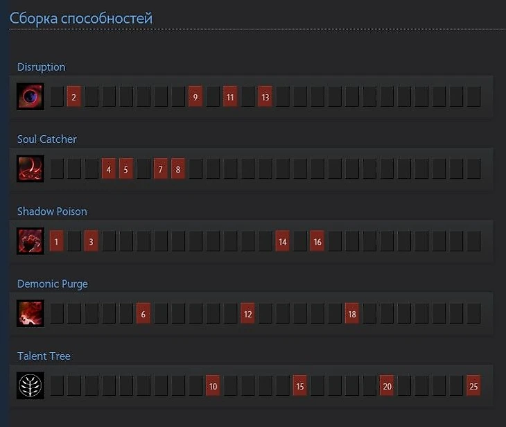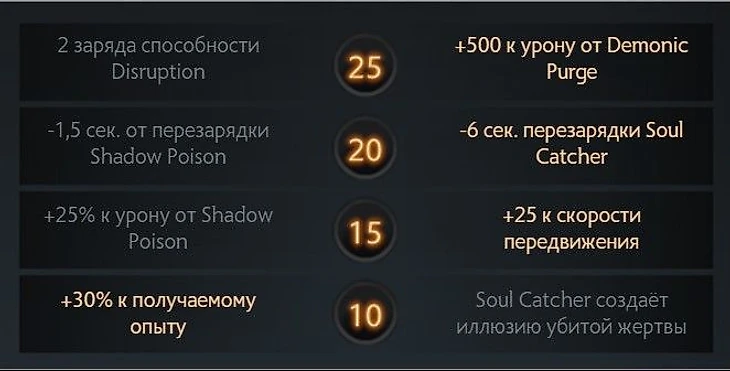 Изучение Disruption на первом уровне. Shadow Demon очень важно изучить Shadow Poison в начале игры, ведь именно это умение помогает ему эффективно сражаться против вражеских героев на линии.