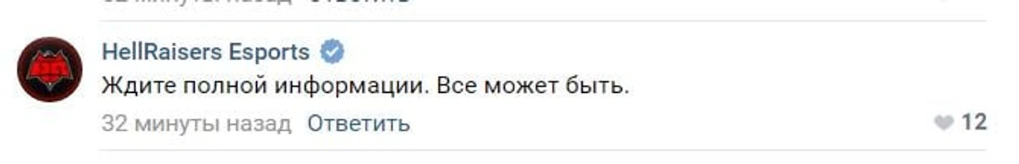 После непродолжительной паузы счет на стриме изменился на 1-1, но официальных заявлений от HR не последовало, лишь комментарий в своей же группе ВК:
