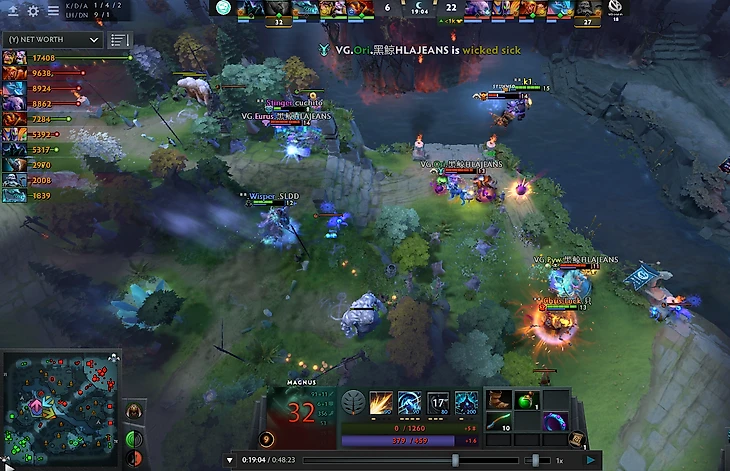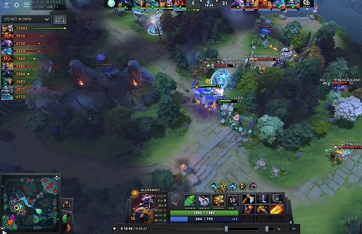Beastcoast с Алхимиком практически не выигрывают по золоту на 19-й минуте. Сразу три героя Vici расположились за Алхимиком таблице нетворсов. Обратите внимание на вардинг – Vici полностью контролируют карту.