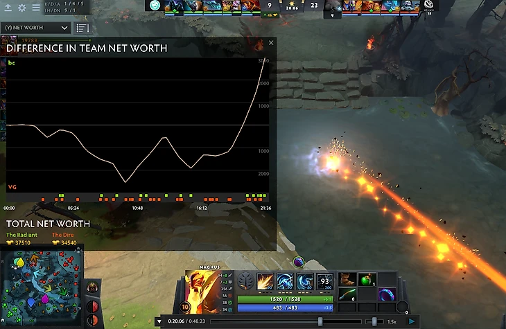 Магнус выкупается за 328 монет (!) и дает РП в Войда, которое позволяет зачейнить станы и убить его. Разрыв увеличивается до 4к, Войд не фармит, инициатива перехвачена, варды от Бисткост расставлены.