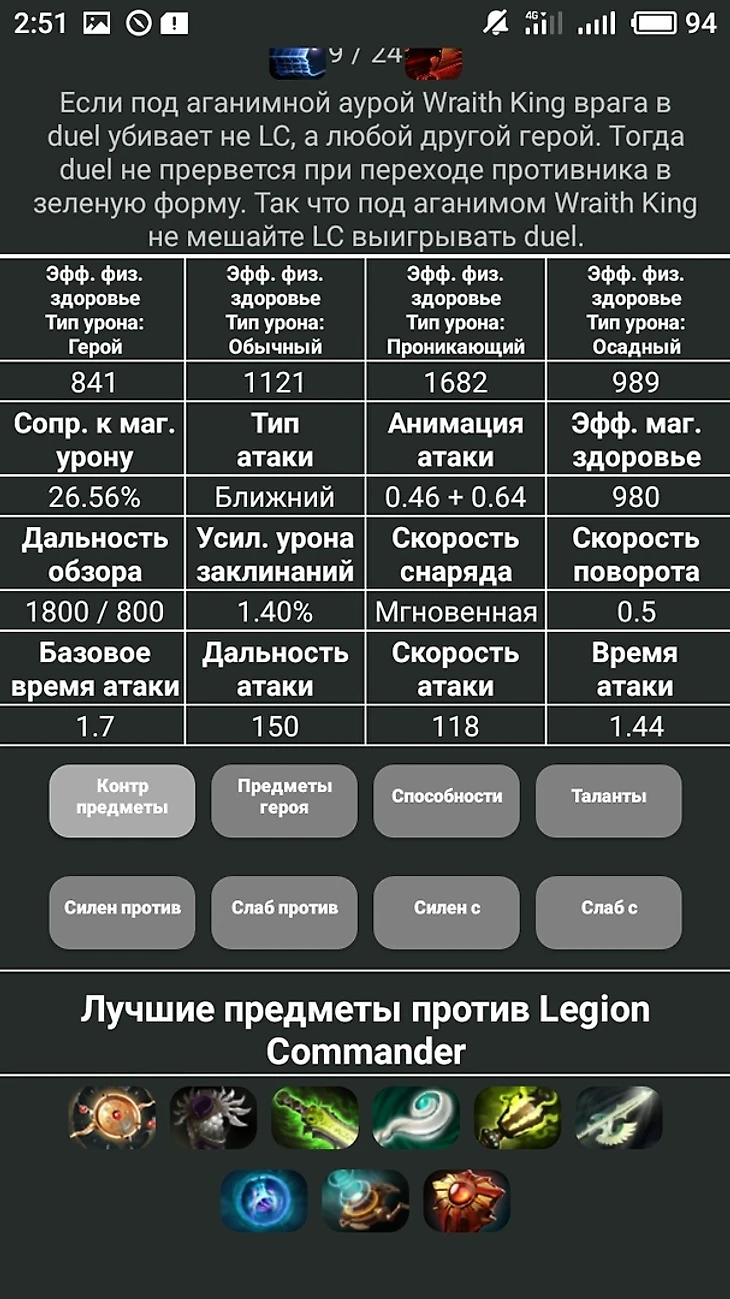 Такого количество информации о герое нет ни в каком приложении