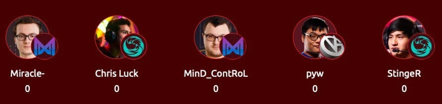 В этот раз выбирать игроков сложно – слишком много топ-команд, где почти все стоят по 5. Я делаю ставку на Nigma – не потому что уверен в их победе, а как раз наоборот. Бывшие Liquid часто начинают турниры наперекосяк – совсем не удивлюсь, если они попадут в нижнюю сетку или из группы, или проиграв в первом раунде плей-офф. Но так же часто Куроки дает своим парням ремня, и они на скилле, опыте и силе воли пробиваются в топ-3, а то и в финал. Так что жду от них кучи лишних игр в плей-офф, а по конкретным игрокам все понятно: Миракл – машина, GH – God.