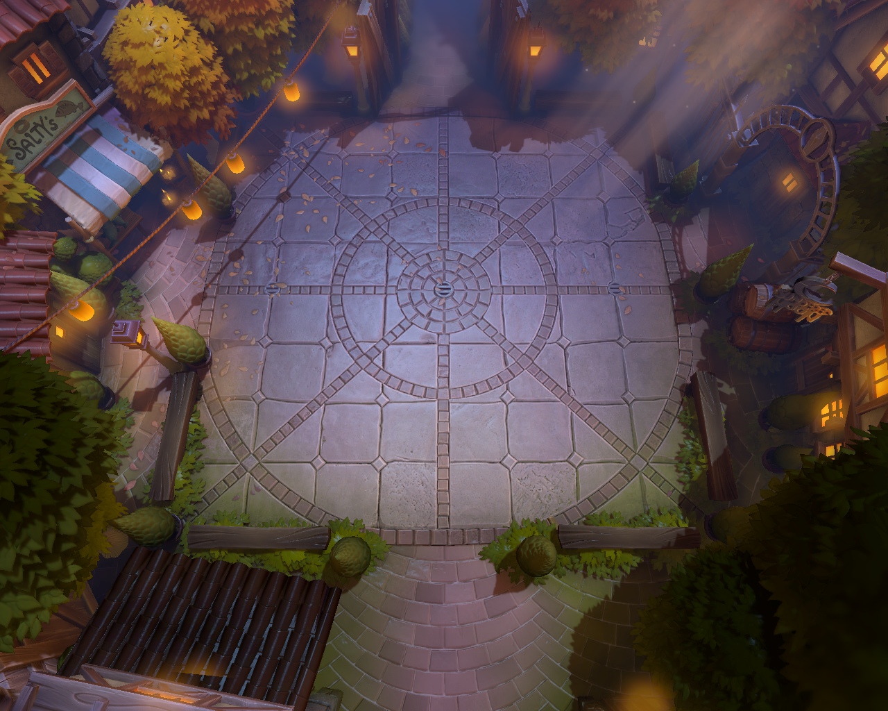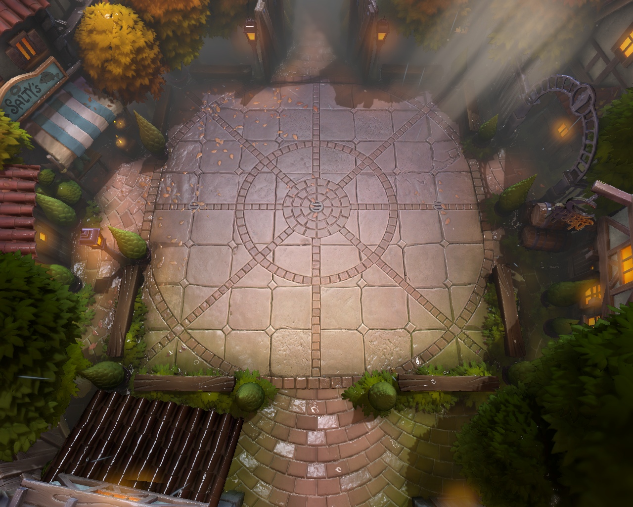 Городская площадь тоже будет иметь погодные эффекты. Вот дождь.
