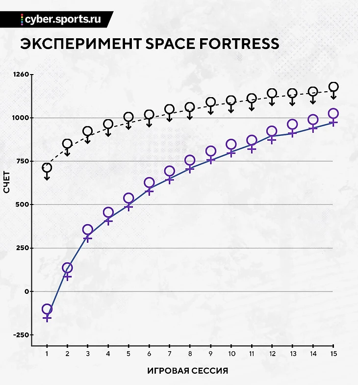 Участникам предложили сыграть 15 сессий по 2 часа. Каждую сессию они запускали игру 36 раз на 3 минуты и записывали не только результаты, но и движение самолета в игровом пространстве. Первичные результаты никого не удивили: в среднем женщины на старте действительно играли значительно хуже, чем их коллеги-мужчины. Но к последней сессии успевали подтягиваться практически до среднего уровня мужчин.
