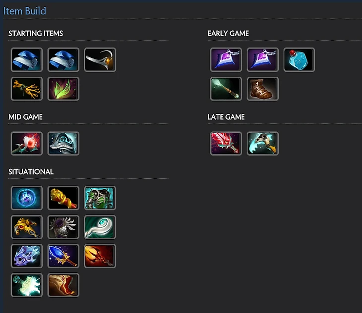 В лейте, используйте Orchid для сборки Bloodthorn, а также укрепите ваш итем-билд при помощи Scythe of Vyse - с такой сборкой ваш герой будет обладать максимальным пиком силы.