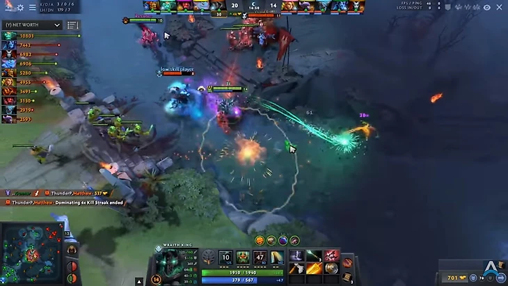 Да, игра закончилась, не успев начаться. У Wraith King был Radiance в курьере на 13:48, а на 16-й минуте Артур успел донести себе Армлет. Он не стал фармить дорогие артефакты, ведь сейчас он сильнейший герой на карте с огромным отрывом, что доказывает таблица нетворсов.
