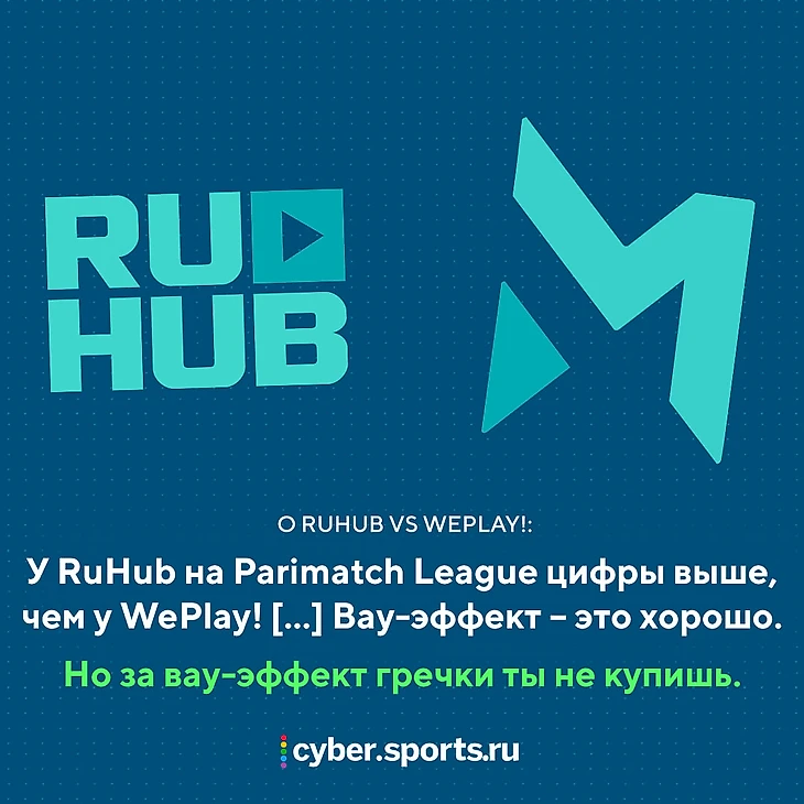 Возьмите Parimatch League, на которой призовой не такой огромный, как у WePlay!, и посмотрите статистику. И поймите, что цифры-то у RuHub выше. Но на это все почему-то не обращают внимания.