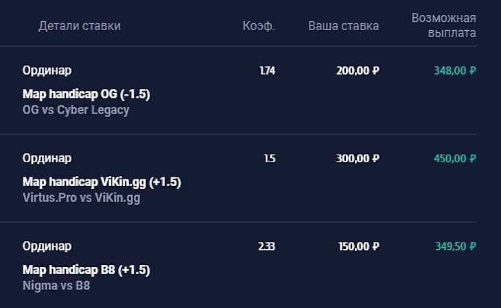Банк: 976 рублей (если Unique выиграют хотя бы одну карту) , 1237 (Если Liquid выиграют 2-0)