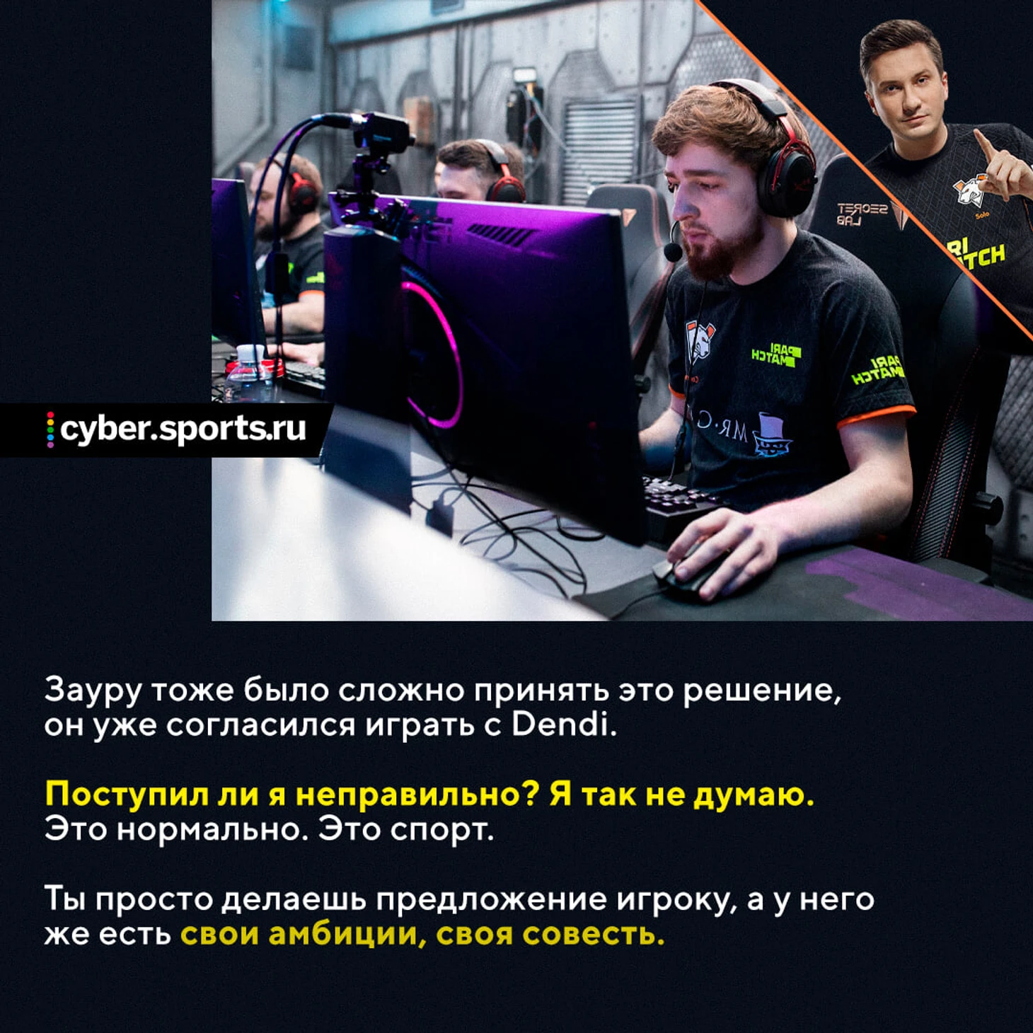 Мы предложили поиграть Зауру. Я ему честно объяснил весь расклад: мы ведем переговоры с GPK, и непонятно, чем они закончатся. Сейчас нам нужна помощь на квалификацию, но дальше ничего обещать не могу. Понимаю, что Зауру тоже было довольно сложно принять это решение, он уже согласился играть с командой Dendi