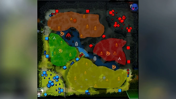 Красная зона – цитадель лесного фарма соперника. Последняя ниточка надежды, которую они не хотят отдавать ни в коем случае. Если вам получится захватить эту область, то у соперника остается всего три опции – играть в вашем лесу (хаха, попробуйте туда добраться без происшествий), играть в своем лесу (вы уже знаете куда идти в смоке), сидеть на базе.
