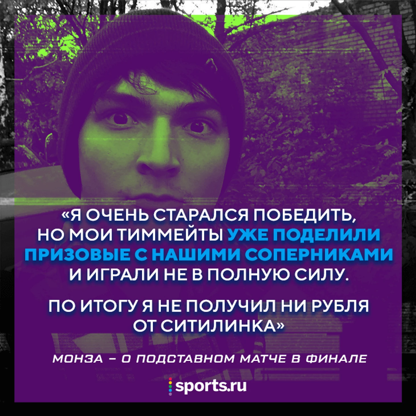 Я помню, что был под несколькими энергетиками, очень старался победить, но, как оказалось, мои тиммейты уже поделили призовые с нашими соперниками и играли не в полную силу, об этом я узнал от GGWPLanaya уже в метро. Поделили каждый с каждым в определенных долях, кто-то 60 на 40, кто-то 50 на 50. Никакой заинтересованности в победе у них не было, в отличие от меня. По итогу я не получил ни рубля от Cитилинка, а все 9 оставшихся игроков получили бабки. Единственный, кто отказался делить деньги – был ДМ, за что ему большой респект, он действительно спортсмен и прямо сейчас находится на своем месте.